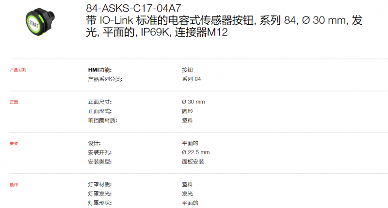 EAO 电容式传感器按钮84-ASKS-C17-04A7系列